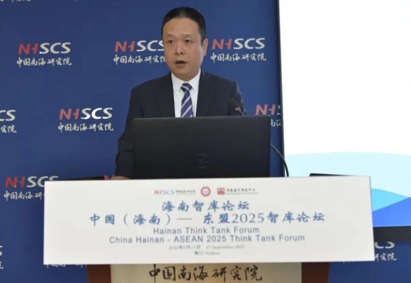 9月17日,海南智库论坛中国(海南)—东盟2025智库论坛在??诰傩小:D鲜∩缈屏匙槭榧?、主席,省社科院院长夏旭,中国南海研究院党组书记曾晓明出席论坛并在开幕式上致辞。海南省社科院副院长,省社科联党组成员、副主席熊安静出席论坛并在闭幕式作总结发言。来自中国与东盟各国高校、科研机构、国际组织的专家学者线下线上共150余人参加论坛。